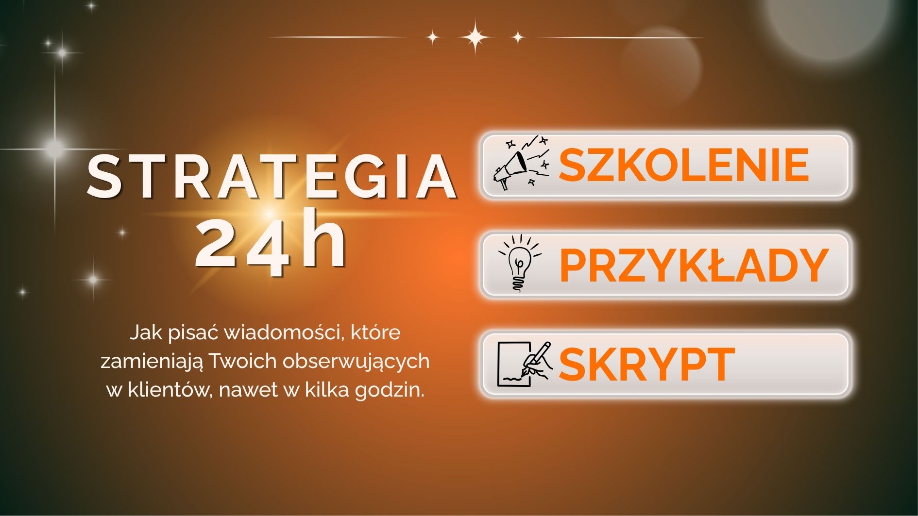 Strategia 24h to szkolenie dla biznesów usługowych, które mają konto na Instagramie i społeczność obserwujących (nie musi być duża!), ale nie wykorzystują w pełni potencjału sprzedażowego rozmów w wiadomościach prywatnych (DM).